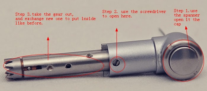 Step1. Use the specified spanner use open the contra angle cap. Here we can replace the cartridge directly.